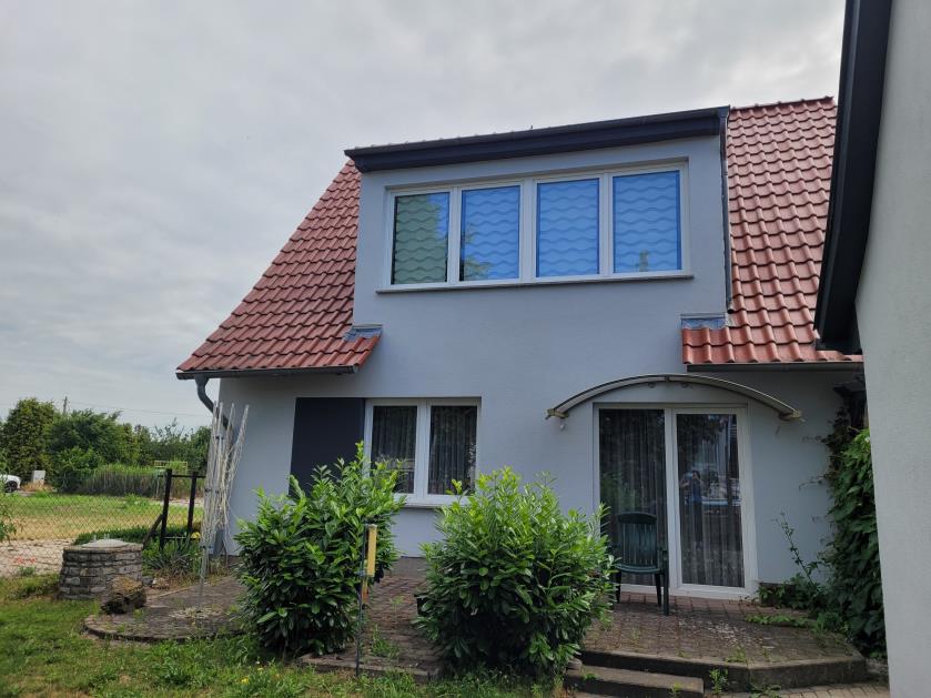 Die Wohneinheit 1 im Erdgeschoss besteht aus einem Korridor, einer Küche, einem Kinderzimmer, einem Badezimmer mit Badewanne, einem Wohn- und Esszimmer mit Terrasse, einem Schlafzimmer, sowie einem Arbeitszimmer, was auch als 2. Kinderzimmer genutzt werden kann und einem kleinen Abstellraum.